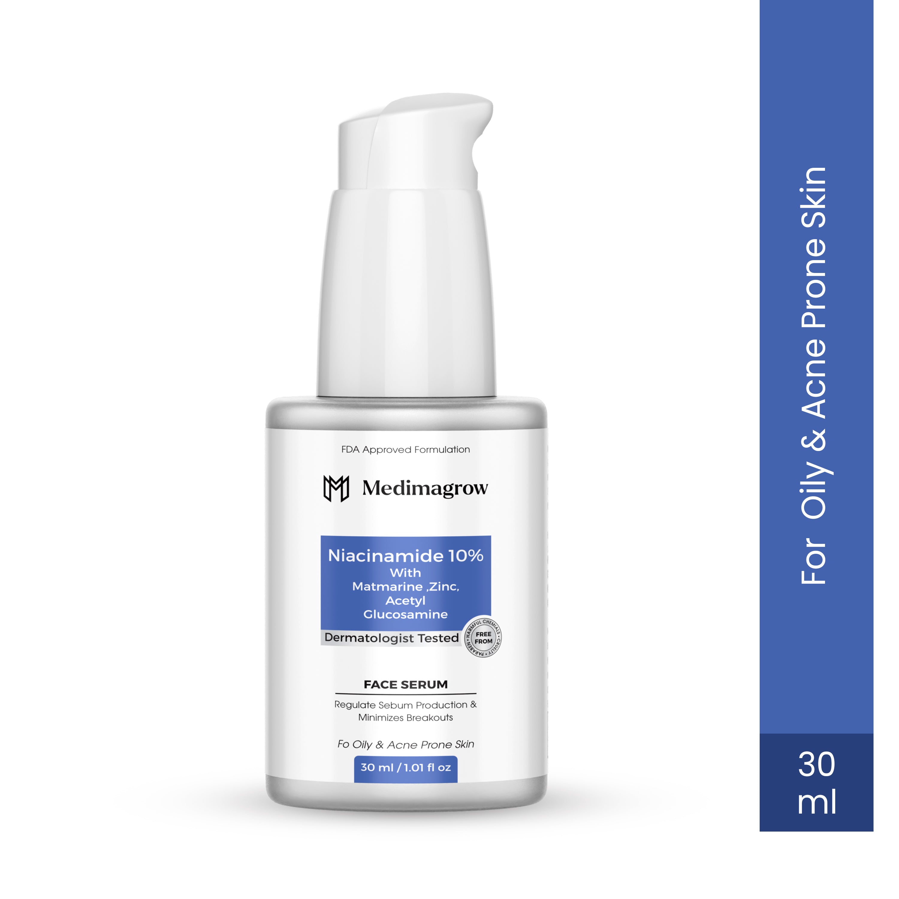 10% Niacinamide Face Serum with Zinc, Acetyl Glucosamine & Matmarin | Oil Control + Brightening | For Oily & Acne-Prone Skin