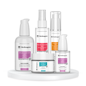 Achieve visibly clear, smooth, and radiant skin with Medimagrow’s expertly curated 5-step skincare combo. Each product is designed to work synergistically to cleanse, treat, renew, hydrate, and protect your skin: