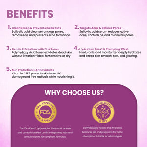 5-in-1 Acne & Glow Skincare Combo – Salicylic Cleanser, Serum, Glycolic Toner, Hyaluronic Moisturizer & SPF 50