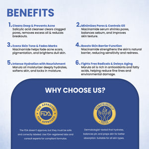 This dermatologist-recommended combo is non-comedogenic, paraben-free, sulfate-free, and suitable for men and women of all skin types, especially oily, combination, sensitive, and acne-prone skin. Whether you're dealing with pimples, dullness, or rough texture, this combo restores balance and gives you a smooth, radiant complexion.