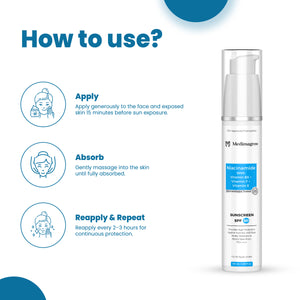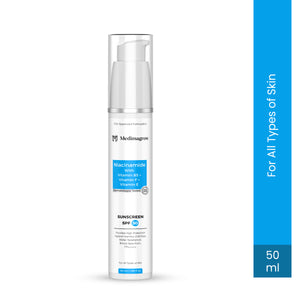 Protect your skin daily with Medimagrow SPF 50 PA+++++ Sunscreen, a lightweight, non-greasy, broad-spectrum sunscreen designed to block harmful UVA & UVB rays while nourishing the skin. Formulated with Niacinamide, Vitamin B5, Vitamin F, and Moringa Oleifera Seed Oil, this sunscreen does more than just protect — it hydrates, soothes, and strengthens the skin barrier.