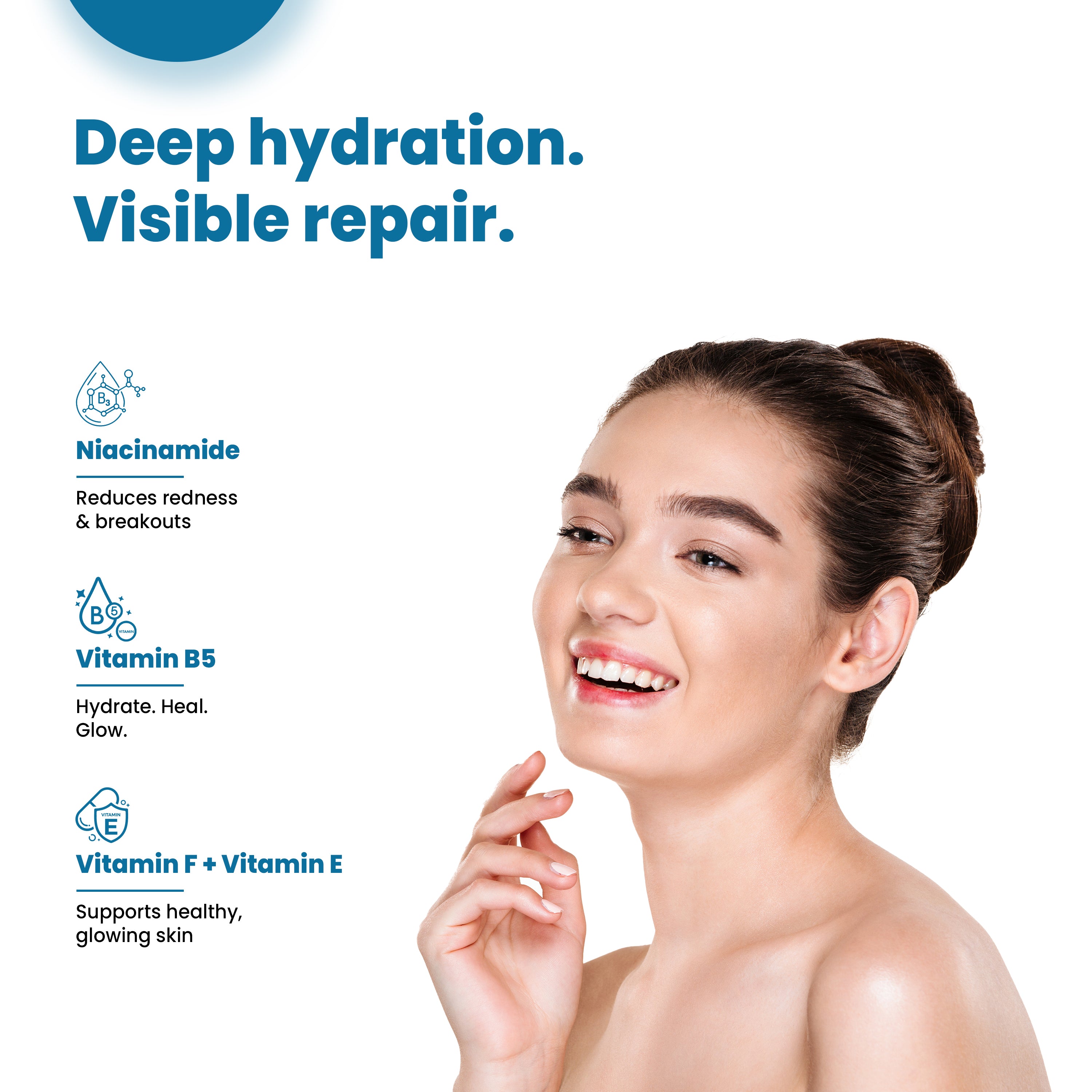 🔹 Vitamin B5 & F: Deep hydration and skin repair